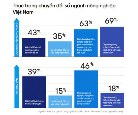 Theo thống kê, chỉ có 15% hộ nông dân có kế hoạch đầu tư vào công nghệ mới và 18% hộ ứng dụng công nghệ thông tin vào hoạt động sản xuất kinh doanh. 46% hộ được khảo sát cho rằng công nghệ tự động hóa có tầm quan trọng cao trong hoạt động sản xuất và 39% hộ nông dân gặp khó khăn trong việc tiếp cận trông tin.